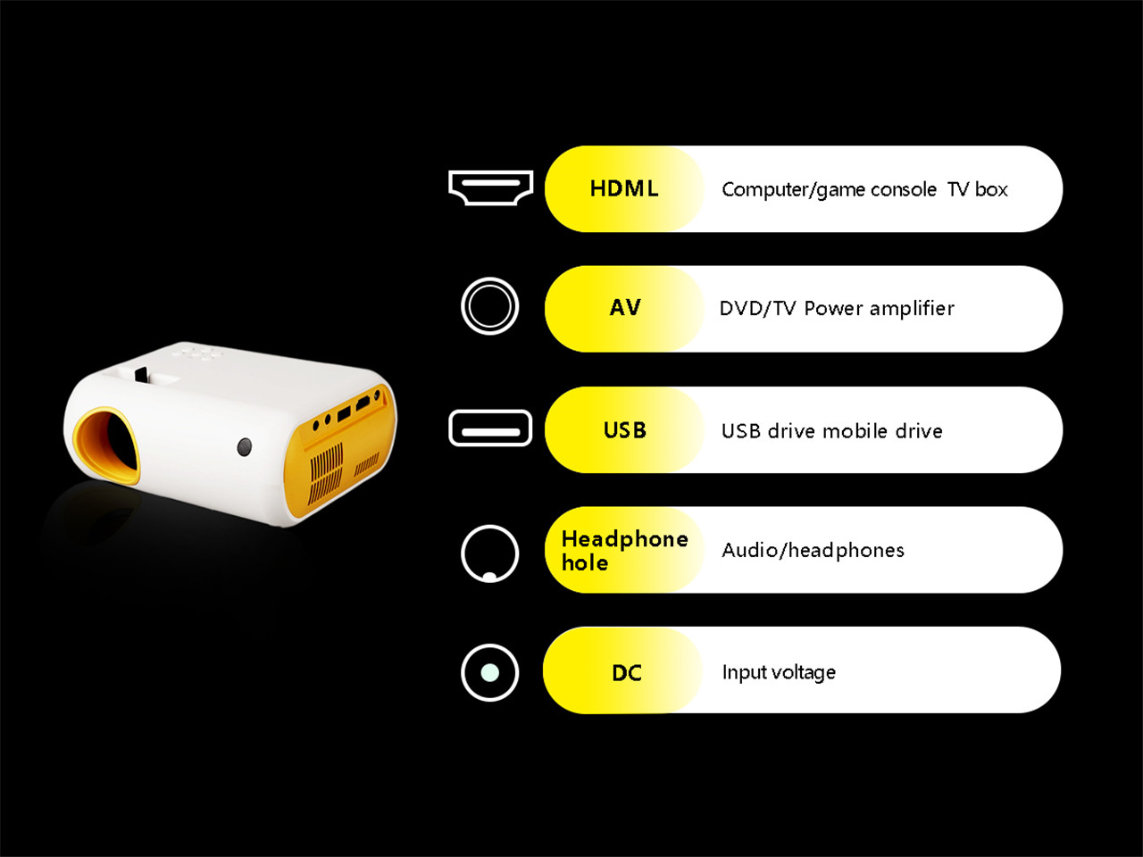 Cute and stylish appearance: The color of this projector is composed of yellow and white, but also supports customization of other colors. Bright colors and the matte texture on surface make this projector look younger and more interesting. Its small size and cute appearance also has great appeal to children and teenagers as well.