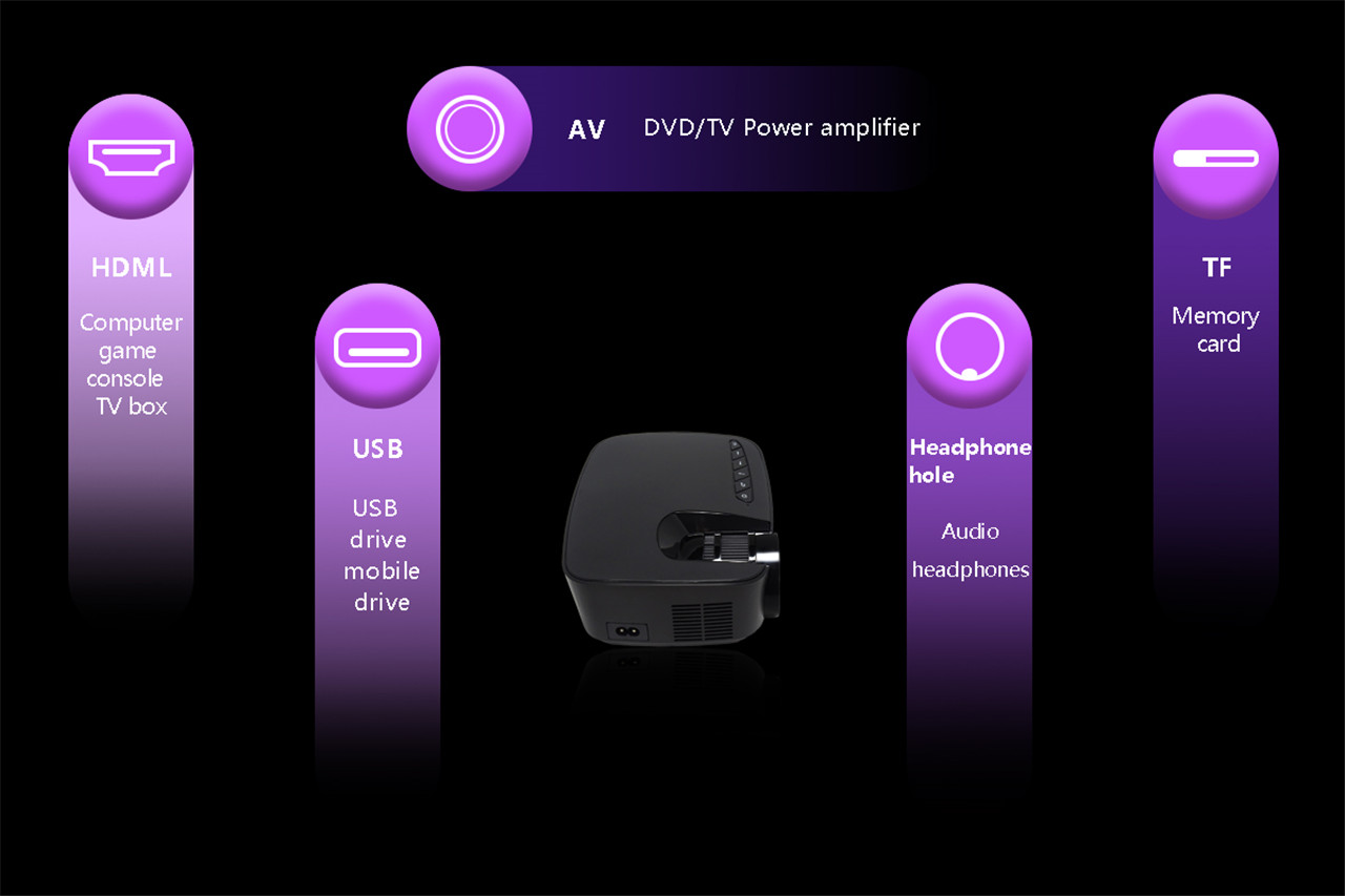 Portable and wonderful appearance design: The portable projector comes with portable dimensions and a unique design that makes it easier to carry anywhere. Simple and atmospheric appearance, using the latest glass lens, projecting soft light beam will not cause harm to human eyes, above the lens, increased manual focusing and trapezoidal correction configuration. The overall product surface is with metallic luster, looks smooth and bright.